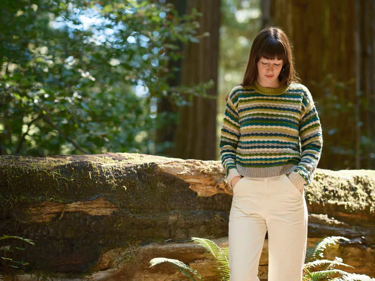 A green rainbow knitted in an intricate tuck pattern using an incredibly soft merino wool blend.