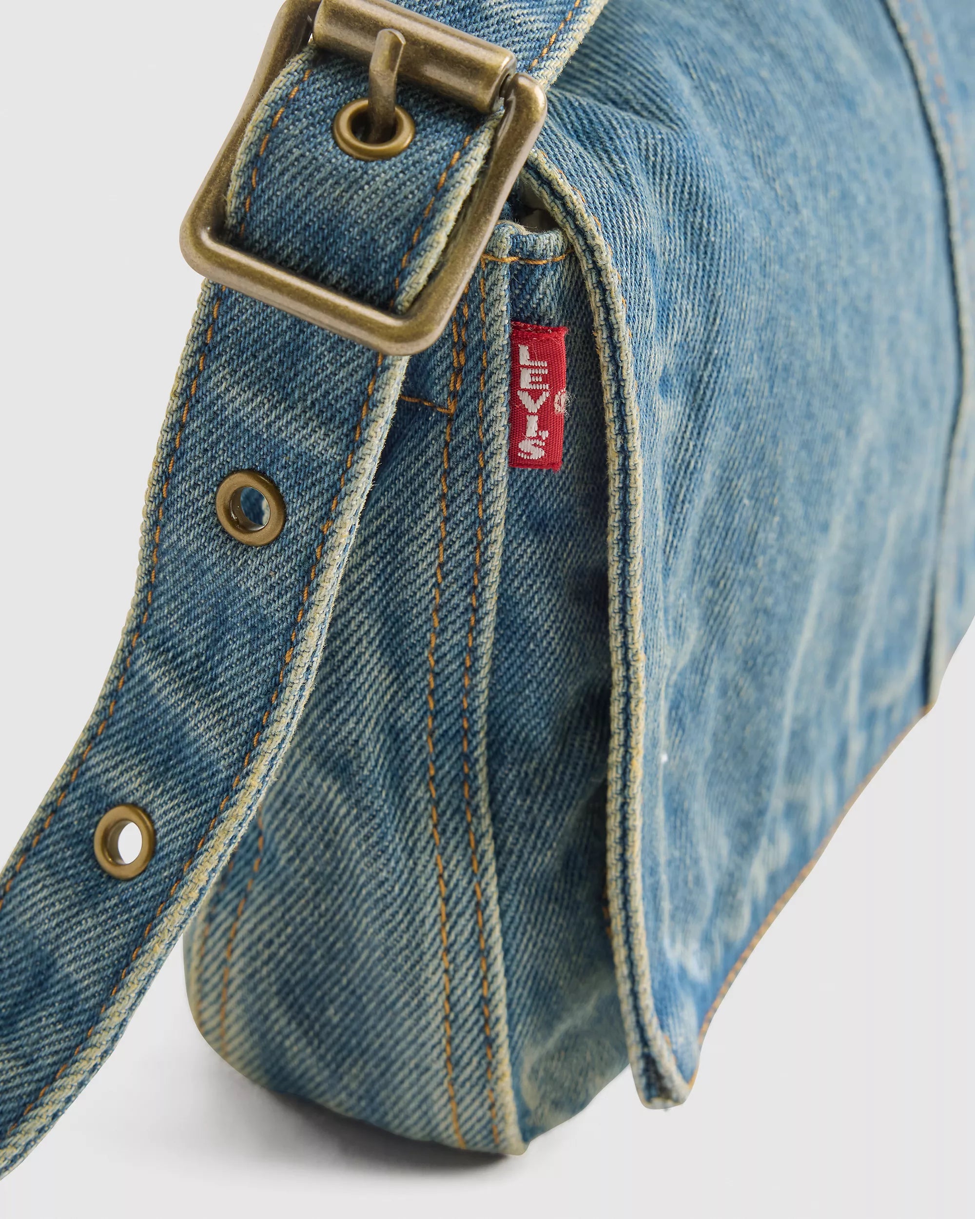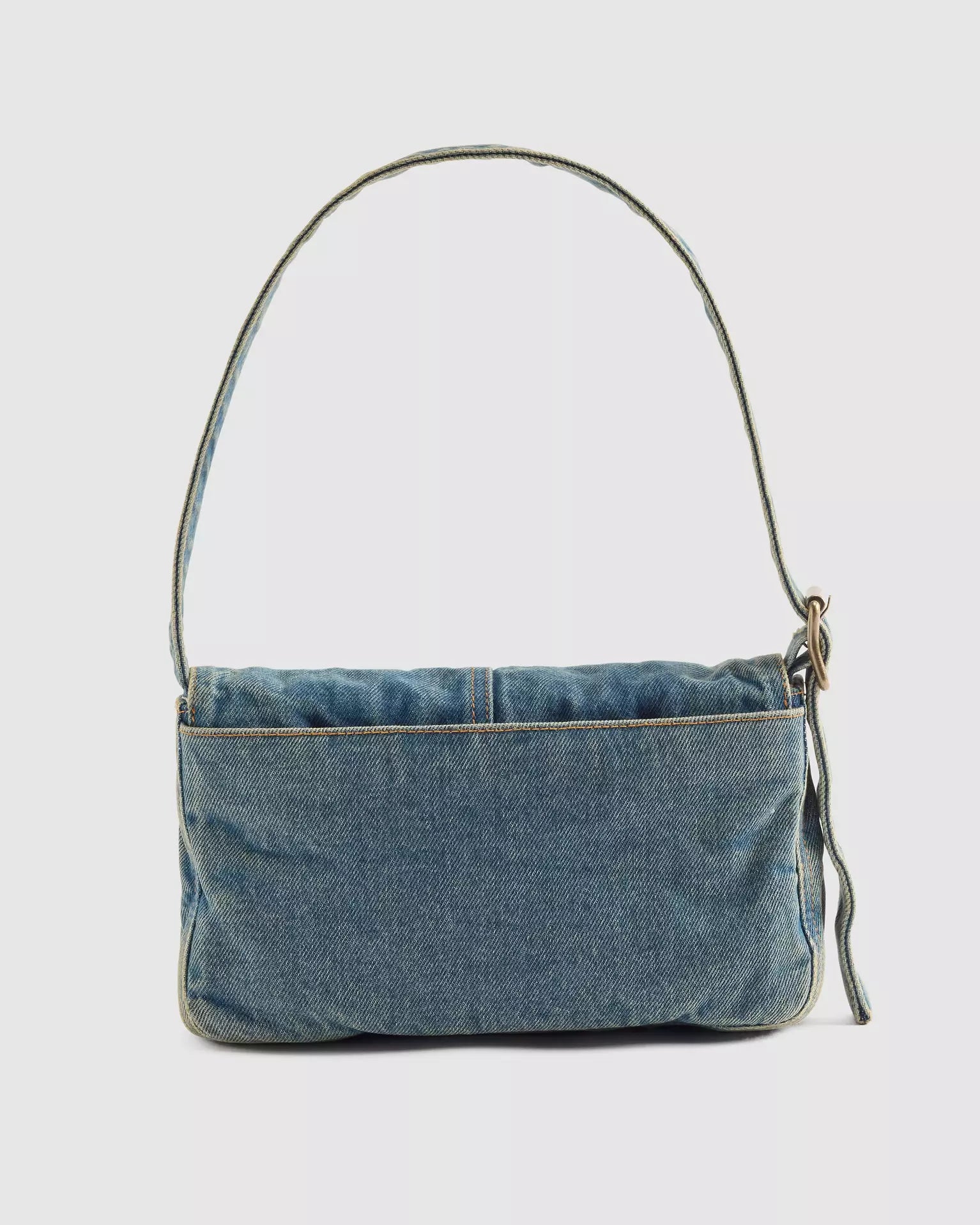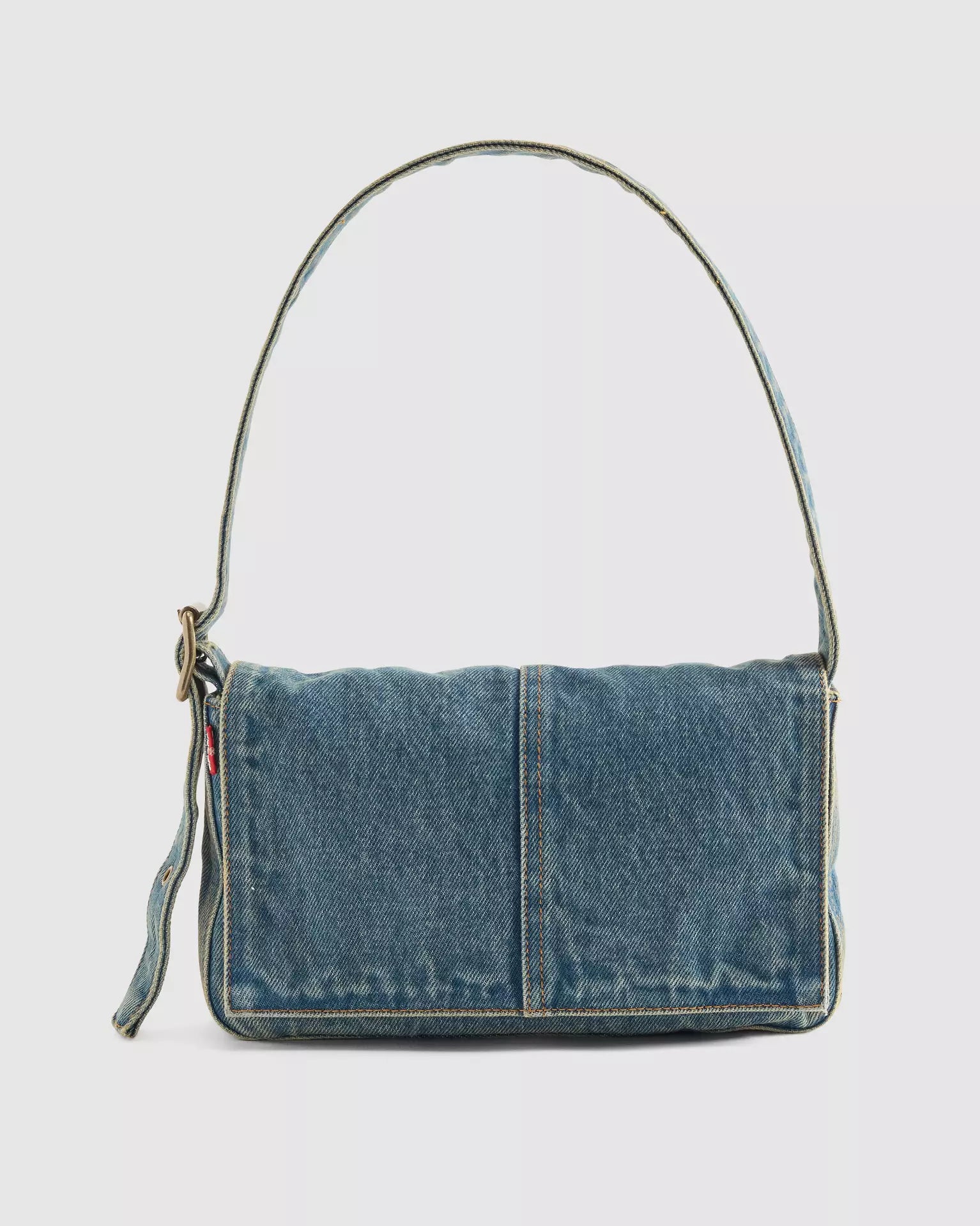This vintage-inspired Brannan Shoulder Bag is made with denim and features a foldover design with a magnet closure and an adjustable strap.